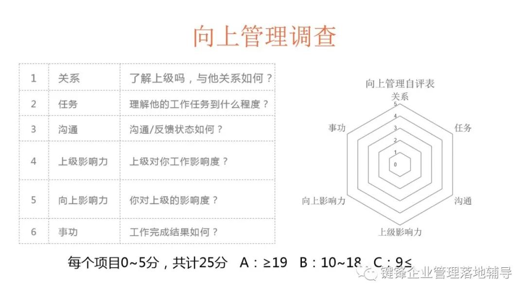 第一個(gè)演練項(xiàng)目“向上管理調(diào)查”,調(diào)查學(xué)員們的六邊形能力,并進(jìn)行講解、了解自身的管理優(yōu)勢(shì)、并發(fā)揮出自己的高效能。
